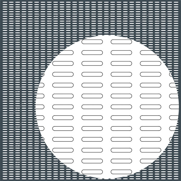 Le trou perforé en oblong de 5×25 mm imprime une lecture graphique élégante et directionnelle. Posé à l’horizontale, il allonge visuellement les clôtures urbaines et allège le volume habillés; à la verticale, il accentue la sensation de hauteur et favorise la vue dans un brise soleil. Ce motif perforé convient aux parements rapportés, portes de locaux techniques, capotages d’équipements d'ordures ménagère, cloisons ajourée et mobiliers urbains modernes lorsque l’on recherche, une ventilation modérée et un masquage efficace de l’arrière-plan.