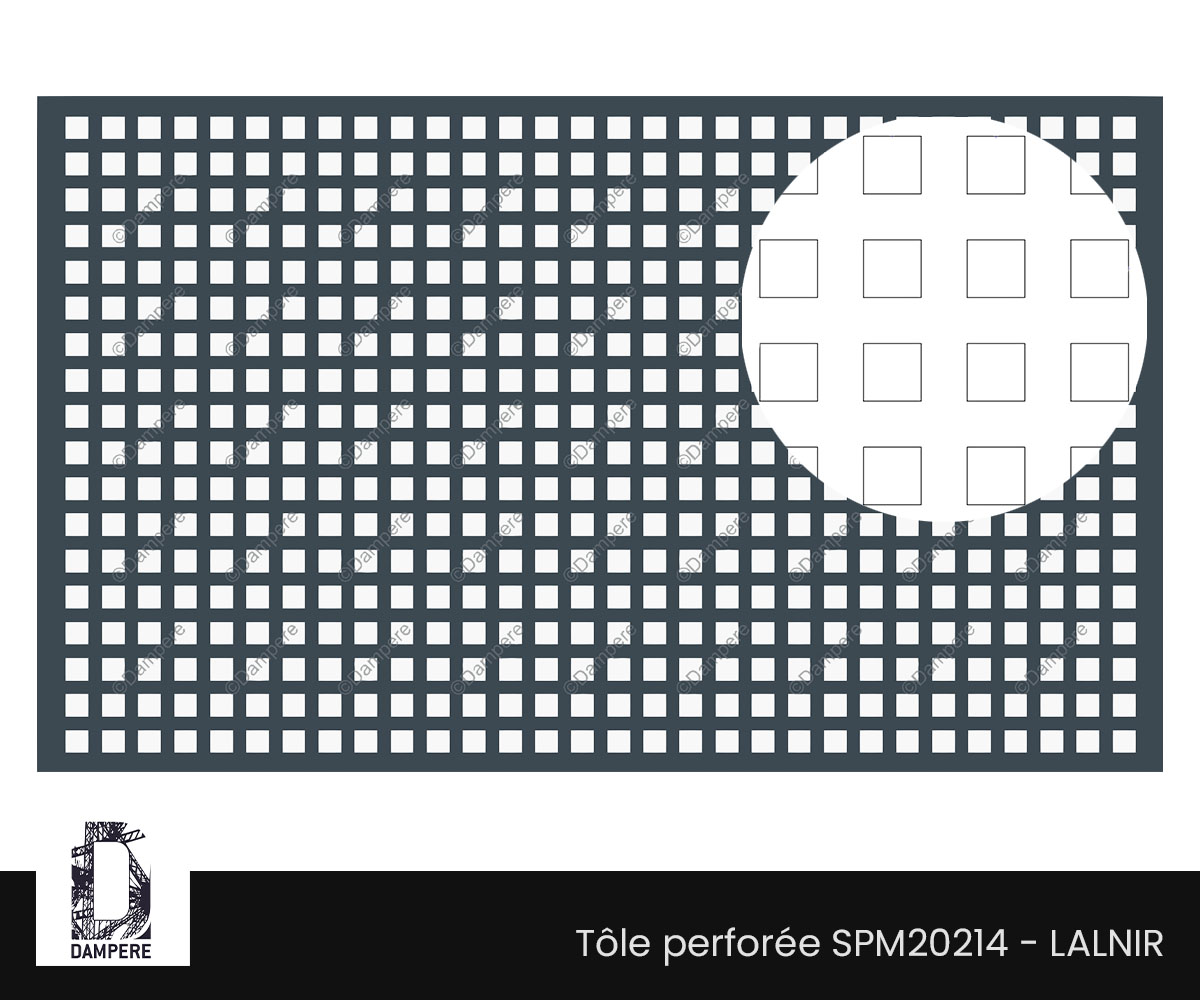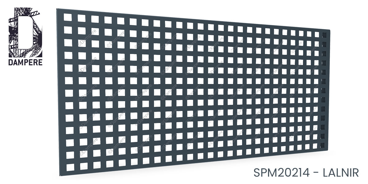 La tôle perforée C25U45 – Lalnir incarne une esthétique imposante au service de la protection et résistance. Composée de trous carrés de 25 mm de côté, alignés avec régularité selon un entraxe de 45 mm, elle forme un motif orthogonal désigné sous la référence Qg25-45, avec un taux de transparence de 30 %. Ce pourcentage de vide équilibré, associé à une large matière résiduelle de 20 mm entre chaque ouverture, confère à la tôle une excellente tenue mécanique, supérieure à celle des modèles plus ajourés de type C10U14 ou C16U20.