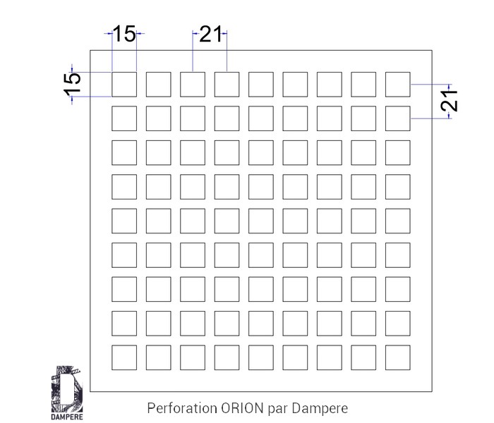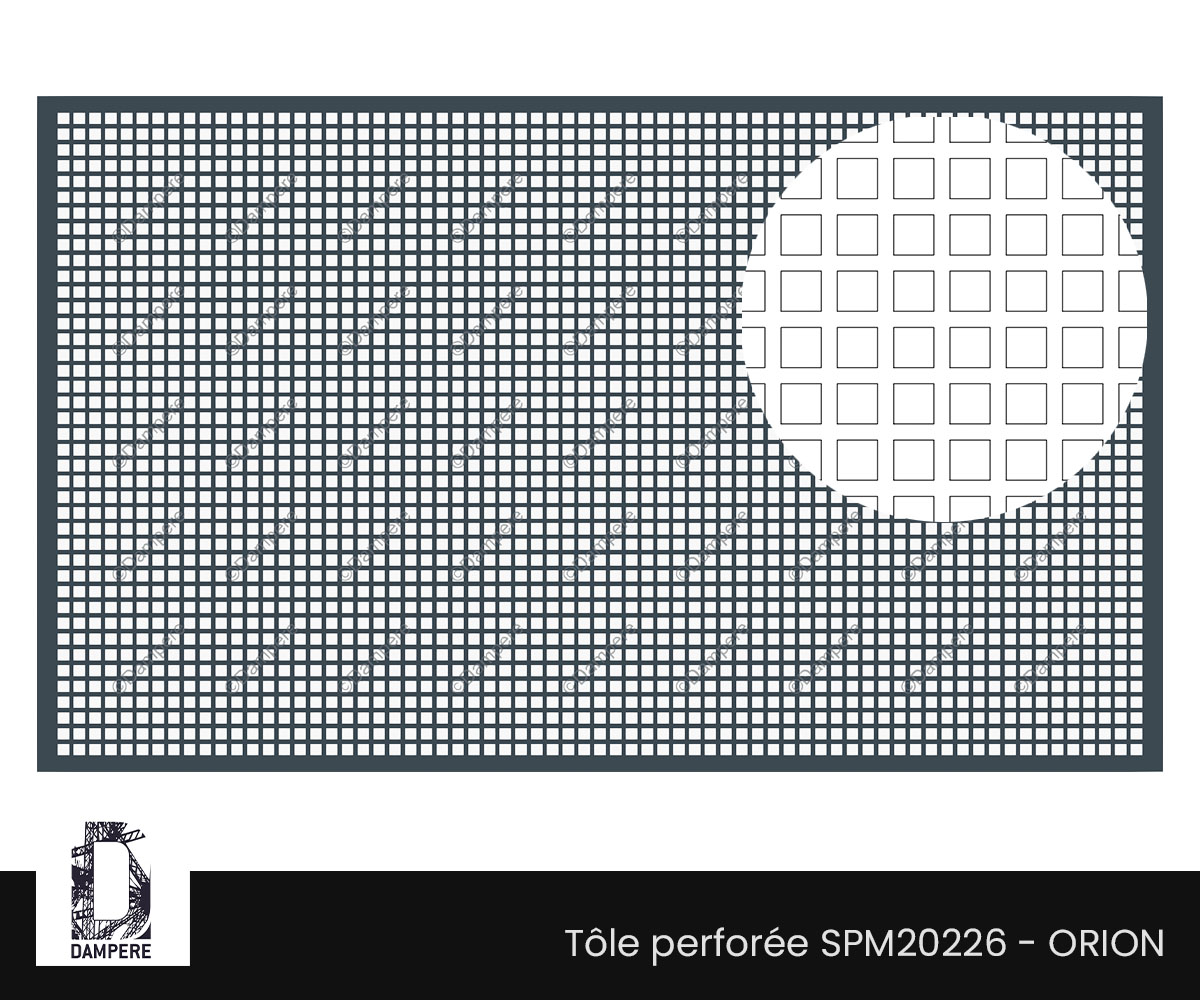 La tôle perforée Orion – C15U21 se distingue par une trame carrée précise et lumineuse, offrant un excellent compromis entre transparence et rigidité. Elle est composée de trous carrés de 15 mm de côté, disposés en alignement orthogonal sur un pas régulier de 21 mm. Tôle perforée de référence standard Qg15-21, ce motif ajouré développe un taux de transparence d’environ 51 % (225 mm² d’ouverture pour 441 mm² de maille), un équilibre pertinent pour ventiler, filtrer la lumière et conserver une présence visuelle maîtrisée. La lecture en grille droite, nette et régulière, inscrit la plaque dans un vocabulaire graphique contemporain, compatible aussi bien avec l’architecture tertiaire que l’équipement industriel et urbain. Le trou carré de 15 mm, plus contenu que les standards de perforation très ouverts, génère un maillage métallique fin qui reste lisible de loin tout en produisant, de près, un effet de résille métallique texturée et élégante. Contrairement aux perforations rondes ou en quinconce, soumis à la lumière du soleil, la trame carrée en ligne crée des ombres projetées orthogonales franches et un rendu quasi “pixel” qui valorise les façades urbaines, caissons d’habillage, protections d’appareillage ou écrans de ventilation décoratifs. La perception visuelle est moins présente qu’avec des ouvertures plus larges, ce qui rend la tôle perforée Orion – C15U21 adaptée aux environnements mixtes où l’on recherche une présence graphique, mais sans une présence visuelle trop excessives. Avec un entraxe de 21 mm pour une ouverture de 15 mm, la matière résiduelle entre perforations atteint 6 mm. Cette ligature supérieure à celle des grilles très ouvertes assure une meilleure tenue mécanique à épaisseur égale. En acier 1,5 mm, des panneaux non encadrés de dimensions modérées conservent une planéité satisfaisante ; au-delà d’environ 0,8 à 1,2 m², on recommandera un encadrement périphérique, des plis de raidissement ou une ossature rapportée, surtout en extérieur ou en zone sollicitée (vent, chocs, vibrations). Pour des formats étendus, une épaisseur majorée ou un matériau plus rigide (alu 3 mm, acier 2 mm) sécurisera l’ouvrage. Finitions : acier galvanisé Z275 pour la robustesse et la polyvalence ; thermolaquage polyester pour la durabilité UV et la signature couleur ; aluminium pour le gain de masse sur grandes portées Budget indicatif : en acier galvanisé épaisseur 1,5 mm, la tôle perforée Orion – C15U21 se situe généralement entre 52 € et 78 €/m² autour de 100 m² de commande, selon l’épaisseur, la finition, le calepinage et les contraintes de pose. Ce motif offre un équilibre très opérationnel : plus de 50 % de vide pour une rigidité maîtrisée, un rendu graphique précis et une mise en œuvre facilitée par une trame régulière.