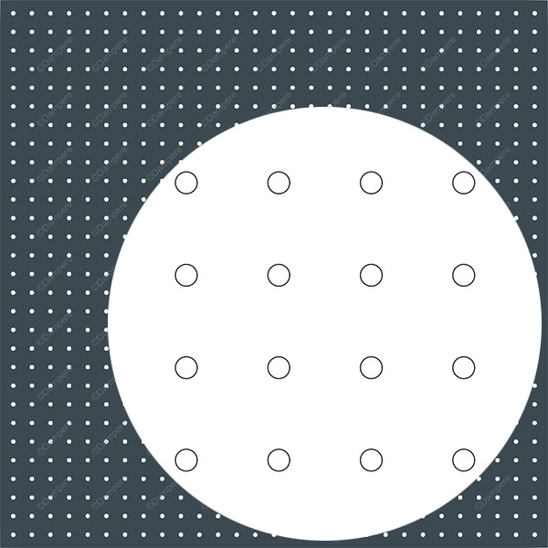 Tôle perforée standard MAME à trous ronds de 5 mm dont les centres sont disposés sur une grille orthonormée. La disposition des trous permet à la fois de laisser passer l'air tout en réduisant la vueUsages
