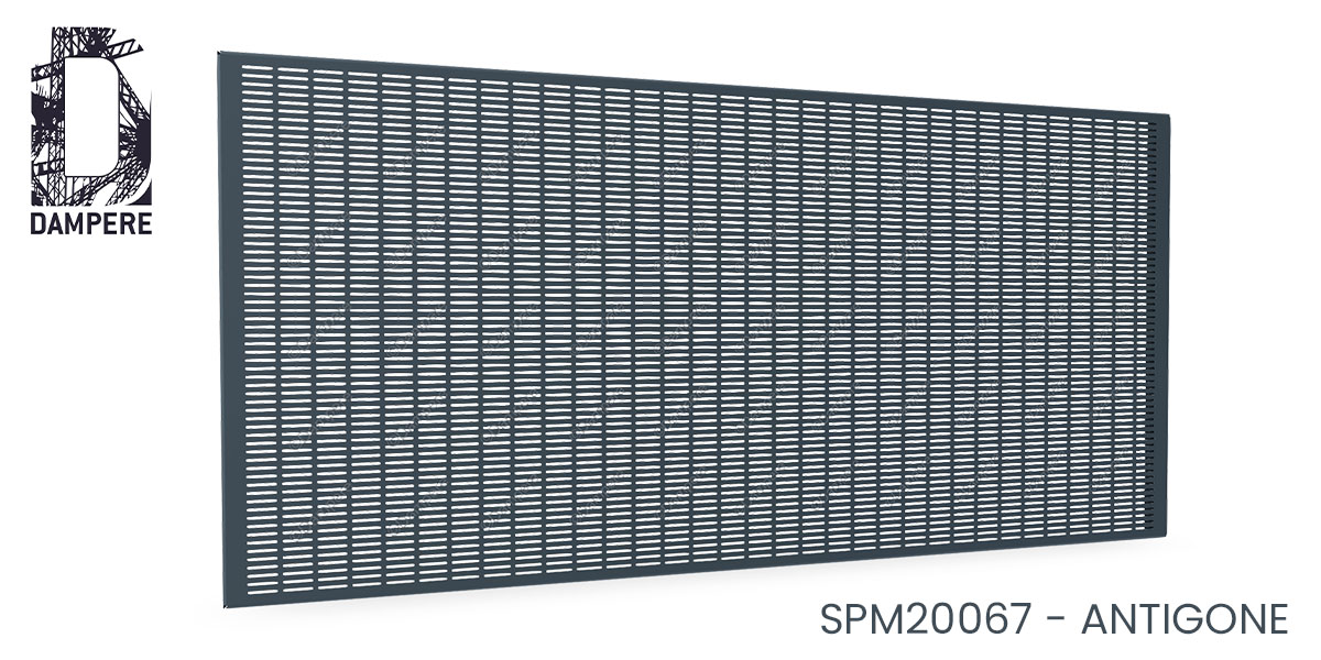 La tôle perforée pour ventilation Antigone de DAMPERE s'utilise principalement en grille de protection, en grille de cache radiateur, en support de soufflerie ou en composant de ventilation. Cette perforation protège en milieu urbain car la finesse des trous évite le passage de déchets ou de mégots de cigarettes.