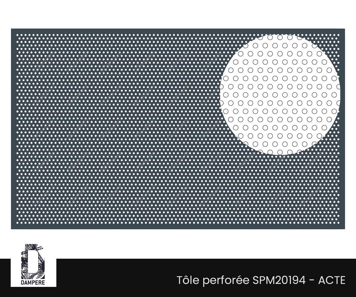 Tôle perforée R6T12 - ACTE à trou rond de 6 mm disposition en quinconce pour former une grille perforée Rv6-12 à transparence 22% de vide